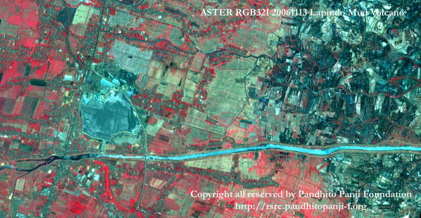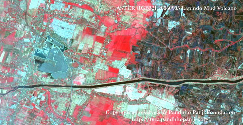 (Gambar atas) Gambar di atas menunjukkan citra ASTER bencana kawasan lumpur