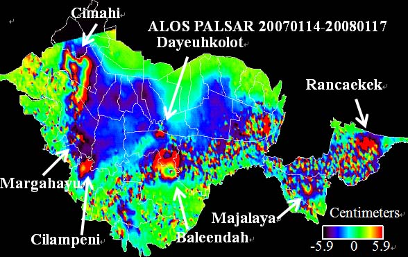 Fig. Hasil pengolahan citra ALOS PALSAR untuk mendapatkan distribusi penurunan