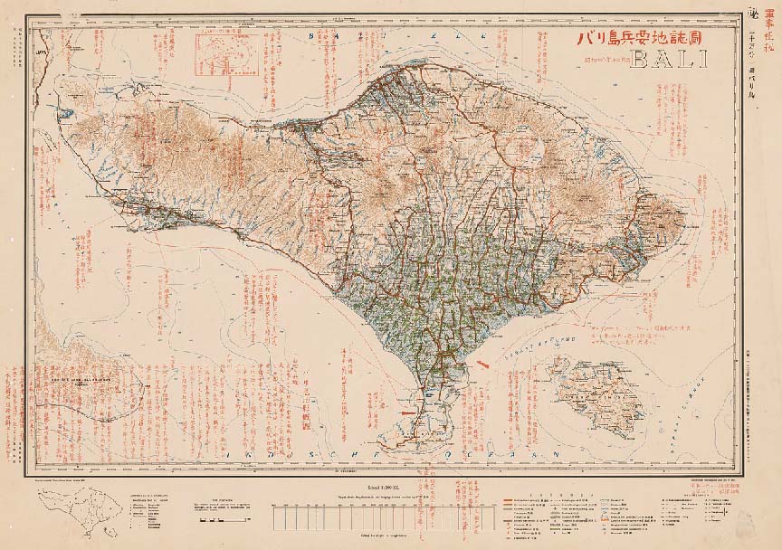 Military strategic map of Bali Island, Indonesia 1942.